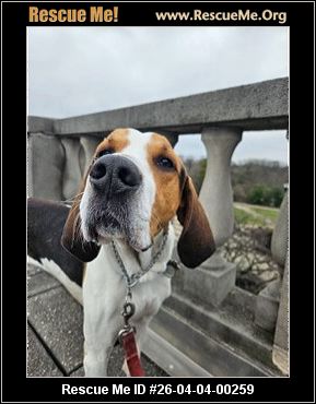 26-04-04-00259D159Denver (m)(male)Treeing Walker Coonhound mixHamilton County, Cincinnati, OHID: 26-04-04-00259