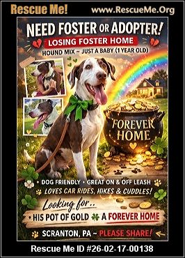 URGENT Charles is looking for his pot of gold a forever home. His foster is relocating and we only have DAYS to